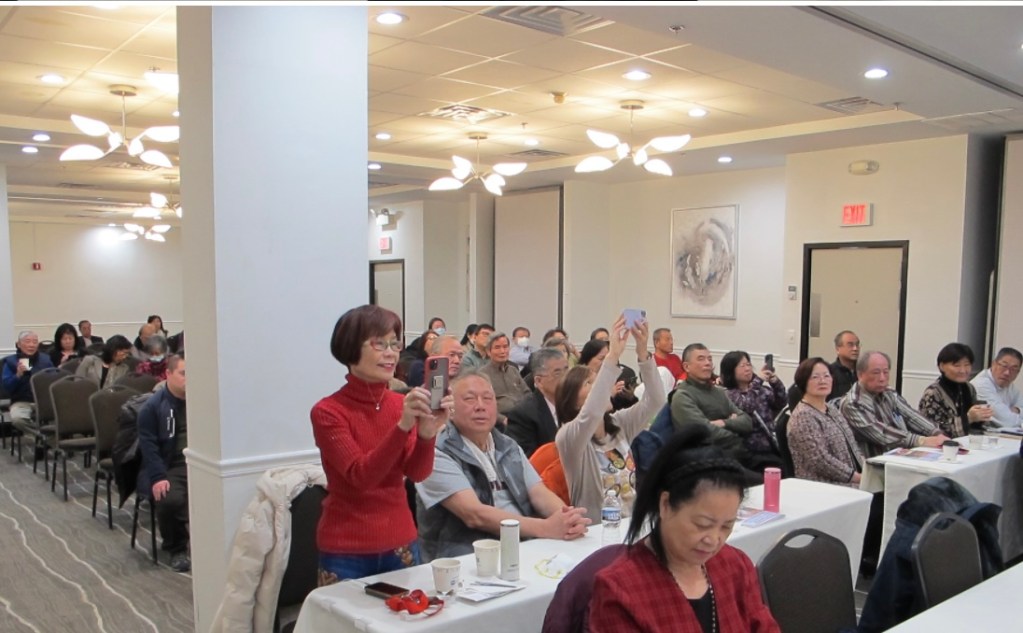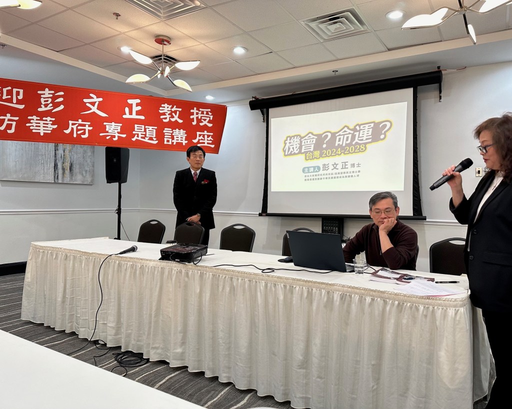 原訂講座時間二個小時,卻延長到三個半小時才因場地問題叫停。彭文正講座由孟繁珂主持、黃秀媚為主講貴賓繫上胸花、潘志中介紹彭文正簡歷、吳貞慧主持Q & A、蕭朝宗負責投影機,鍾燕丹是合辦單位的財務長收支捐款,並將對捐款者寄發收據,收到捐款$7150元,相關財務報告將在合辦Line群中報告,或有諮詢者,可電202-255-8666。