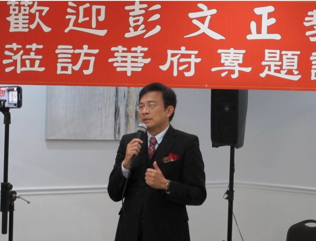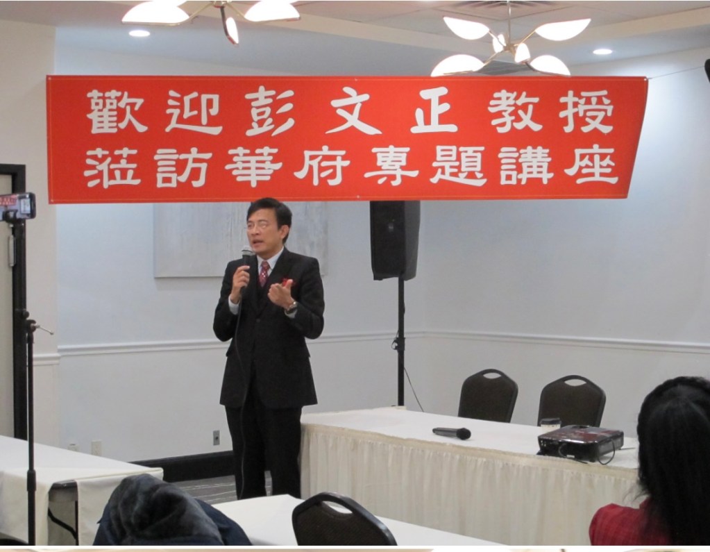 2/18 下午二時設在馬州洛市Best Western 旅館大會議廳的「歡迎彭文正教授蒞訪華府專題演講」之講座,由黃埔同學會、華府榮光會、中華商會、三民主義大同盟、華府台聯會、華府工學會以及國民黨美京分部等七大社團合辦。