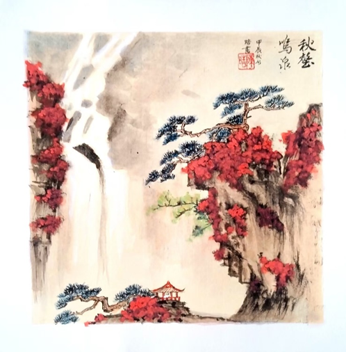 丹青澗水映紅葉,滿目嫣然夢豔妝。