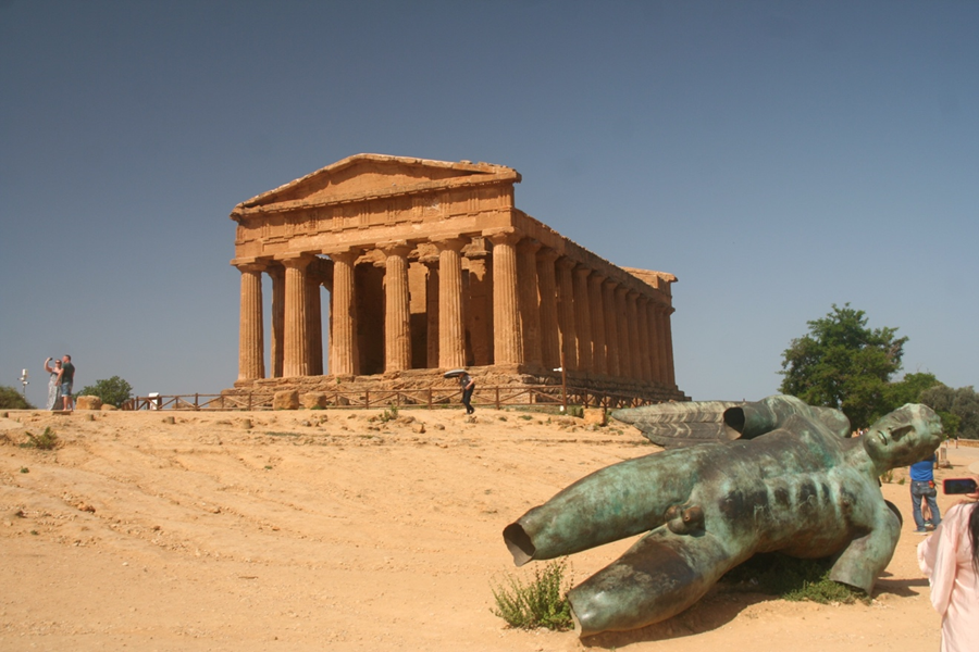 規模最大的是阿格瑞建托(Agrigento)城。公元前六世紀,正值古希臘文明的黃金期,希臘人在南部的濱海高原上,陸續建立了七座宏偉的希臘神廟。奉祀女神康柯爾迪亞(Concordia)的那座神廟保存最完整,建於公元前四百四十年左右。巨柱巍峨,正面的門楣高聳如昔,可與雅典的帕德嫩神廟遙相抗禮。七座神殿之側,迤邐的長列城牆雖已殘破不全,但仍具有三分昔日固若金湯的氣勢。遙想當年士兵們遠眺著前方的海洋,觀察進入眼簾的飽滿風帆。有些船隻帶來地中海周邊的貨物,維持貿易昌旺;有些則盛載敵軍,不懷善意來此挑釁。