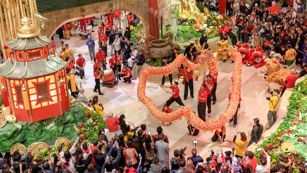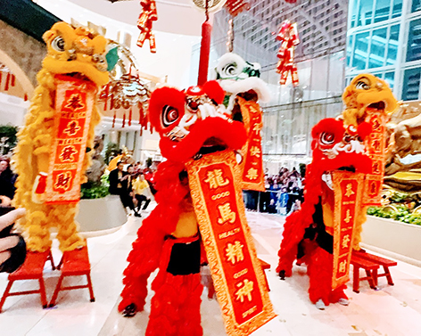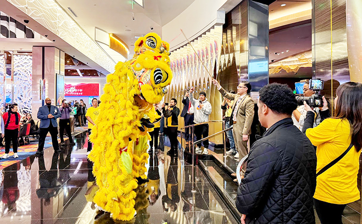 獅團龍隊接著浩浩蕩蕩舞進博藝中心和商店街,為賭客和遊客們祈福招財,增添了無比的歡樂氣氛。