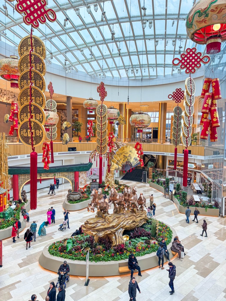 • 八匹奔騰駿馬:橫跨 32 英尺,慶祝馬年的到來,預示著繁榮與勇往直前的動力。