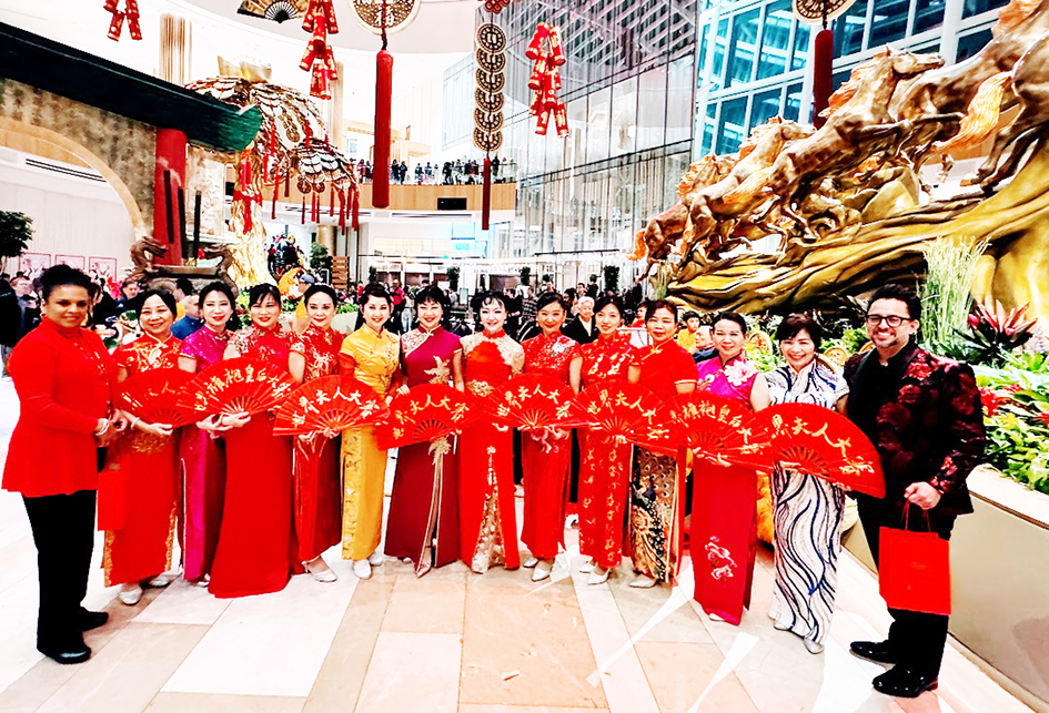 旗袍會成員身著大紅旗袍賀新年,帶來了洋洋喜氣