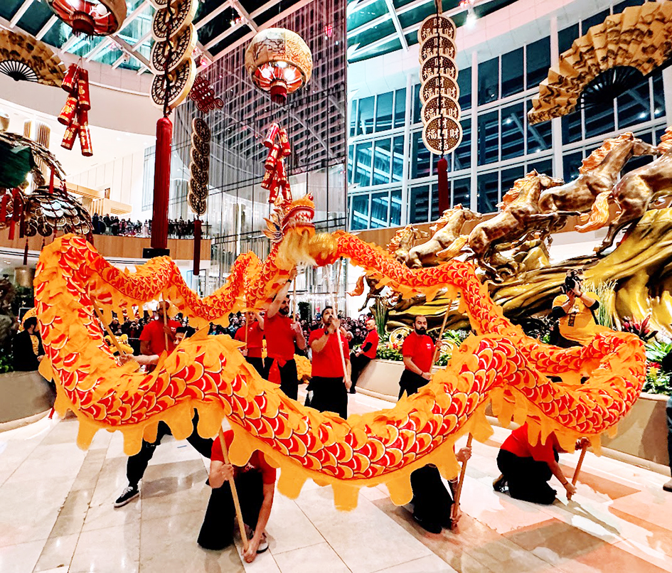 聲勢浩大的舞龍舞獅團隊為國家港美高梅帶來熱鬧非凡的喜氣出